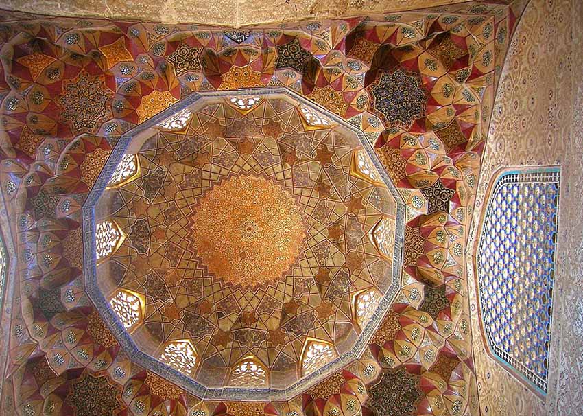 Shrine of Seyed Rokneddin located at a wonderfully frescoed intersection of two main lines of arcades, with caravanserais, a teahouse, and a traditional hammam transformed into a museum.